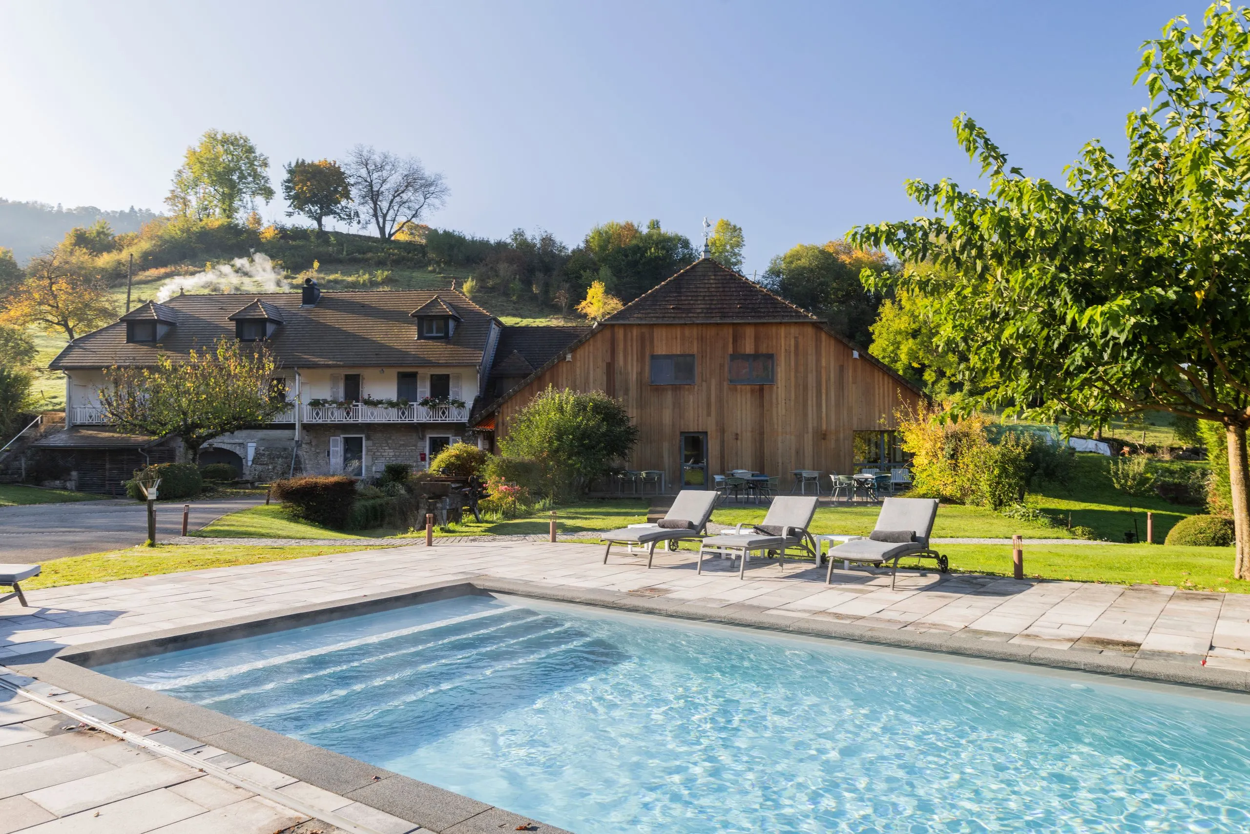 Que ce soit pour quelques longueurs matinales ou une pause au soleil, la piscine reste accessible librement au fil de la journée.