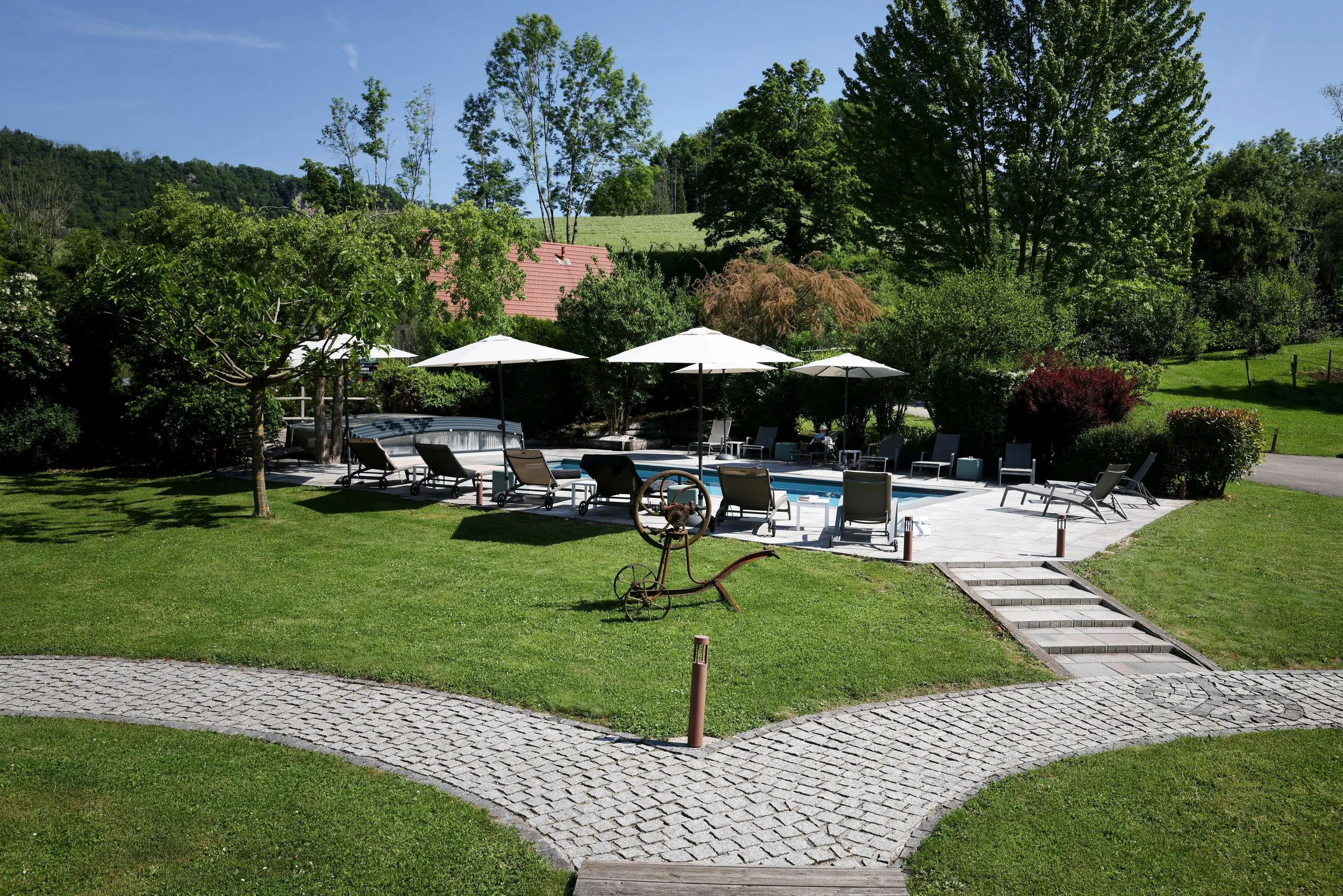 Située au cœur du jardin, elle permet de profiter d’un moment de détente au calme, entre deux escapades ou simplement pour savourer le rythme de la maison.